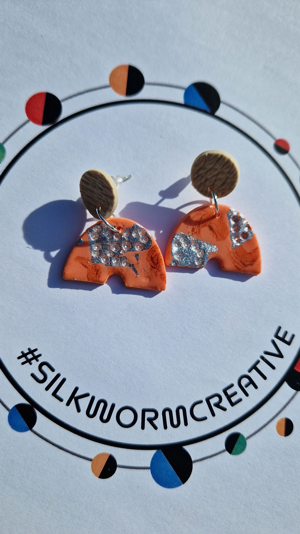 Square plum and gold handmade clay earrings by Silkworm Creative